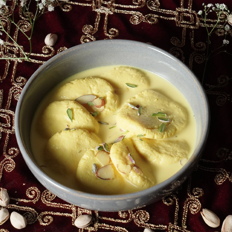 Soft, creamy, and fragrant, Rasmalai is a delightful dessert made with milk, cardamom, and a touch of sweetness